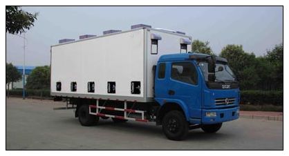 我公司生產的雛禽運輸車自一上市就受到用戶的一致好評,但舊款的雛禽運輸車因為是新開發(fā)產品,還是有一些不盡如人意的地方,例如舊款的雛禽運輸車里裝的制冷機組的冷風是直接吹到廂體內的,但廂體內裝滿雞苗后,冷風出風不均勻,不能保證廂體里各個部位溫度一致,而新款的雛禽運輸車是用鼓風機將制冷機組吹出的冷氣通過均勻分布在車廂的出風口吹出,這樣可以保證廂體內的溫度一致,將雞苗的死亡率控制在最低點。