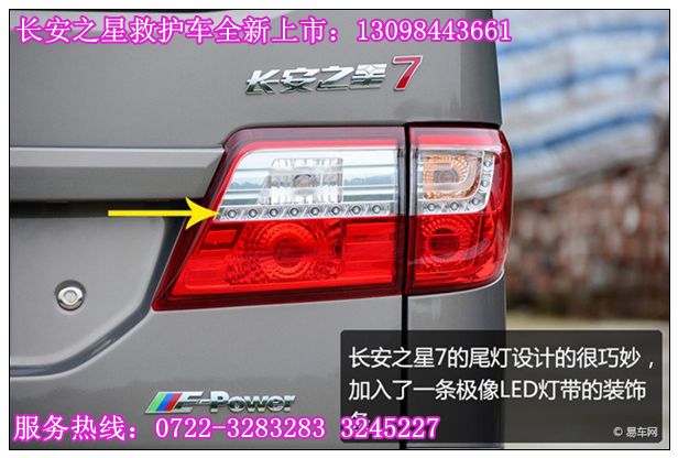 長(zhǎng)安之星7救護(hù)車(chē)車(chē)尾依然延續(xù)了長(zhǎng)安金牛星救護(hù)車(chē)的設(shè)計(jì),只是尾燈的樣式略有改變。