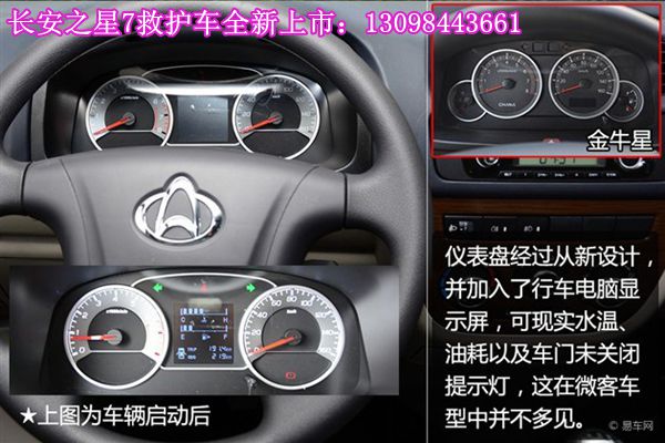 長(zhǎng)安之星7救護(hù)車(chē)的儀表盤(pán)經(jīng)過(guò)重新設(shè)計(jì),并加入了行車(chē)電腦顯示屏,可實(shí)現(xiàn)水溫、油耗以及車(chē)門(mén)未關(guān)閉提示燈,這在微客車(chē)型中是不多見(jiàn)的。