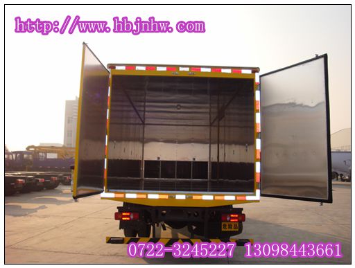 東風(fēng)天錦9.9噸爆破器材運輸車廂體制作說明:此車型廂體為雙層金屬骨架結(jié)構(gòu),外部為冷軋鋼板,內(nèi)部采用鋁合金板蒙皮,夾層為隔熱阻燃材料填充,設(shè)置對開門,廂體內(nèi)部做防靜電處理,廂體底部與廂體前部鋪有阻燃導(dǎo)靜電膠板,并與底盤等電位連接,通過車輛后端的導(dǎo)靜電裝置與大地相連,可防止靜電火花的產(chǎn)生和車輛靜電及時釋放,提高爆破器材運輸車的安全性,廂體內(nèi)部前面和側(cè)面裝有固定拉環(huán)與捆綁帶使用防止貨物移動,保證安全。